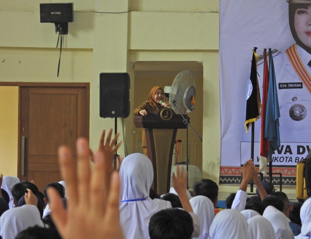 Dalam sambutannya, Eva Dwiana menegaskan pentingnya peran aktif seluruh elemen masyarakat dalam menciptakan lingkungan yang sehat dan aman bagi generasi muda.