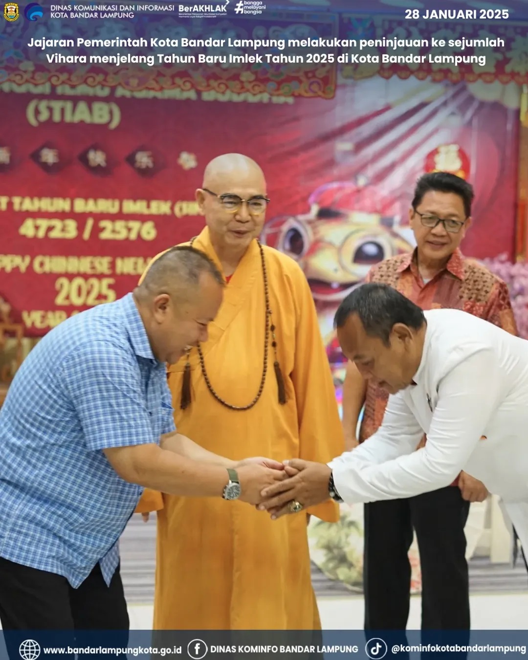 Jajaran Pemerintah Kota Bandar Lampung melakukan peninjauan ke sejumlah Vihara menjelang Tahun Baru Imlek Tahun 2025 di Kota Bandar Lampung.