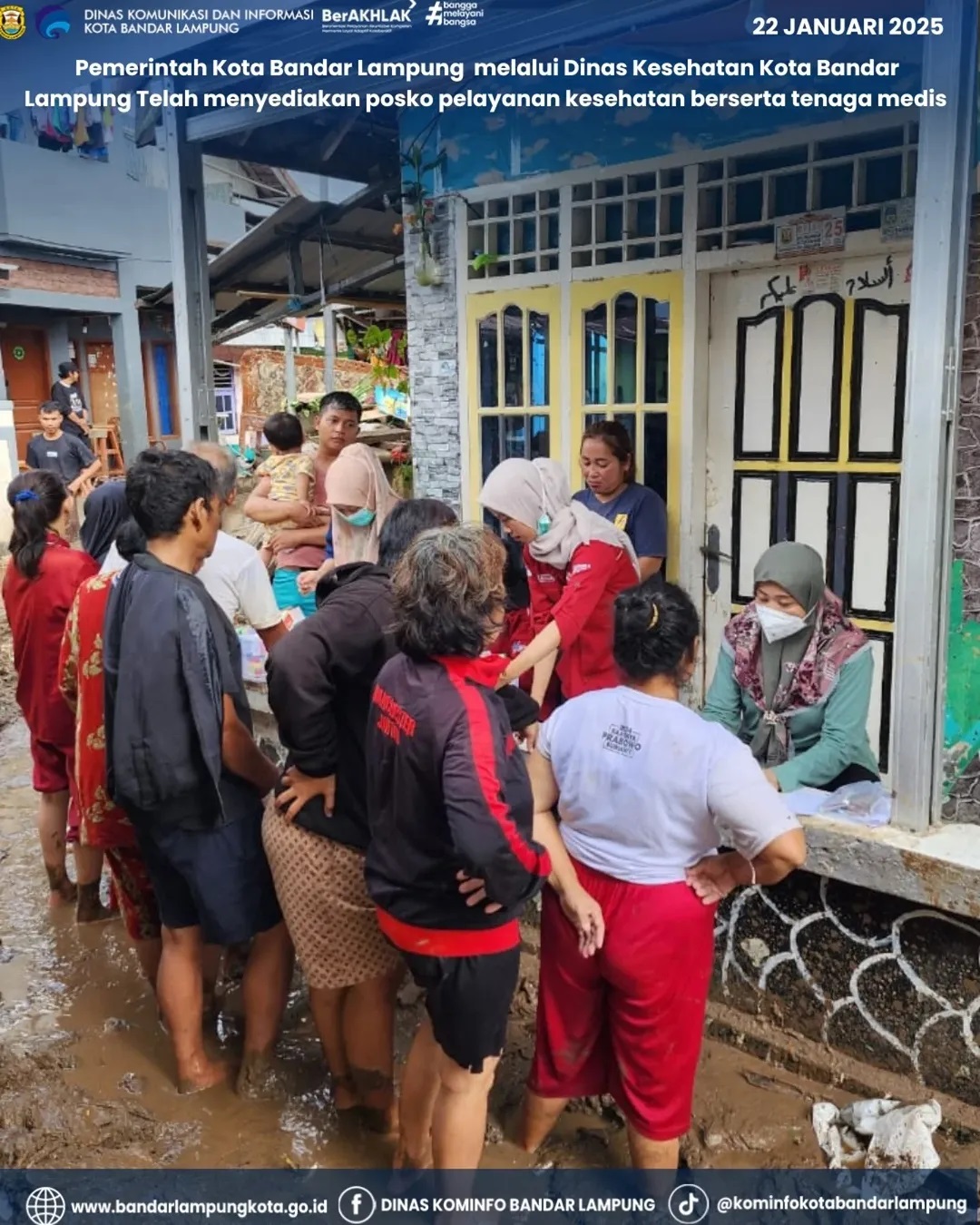 Pemerintah Kota Bandar Lampung melalui Dinas Kesehatan Kota Bandar Lampung Telah menyediakan posko pelayanan kesehatan berserta tenaga medis yang siap membantu masyarakat yang membutuhkan pengobatan guna penunjang keperluan kesehatan masyarakat yang terdampak musibah banjir.