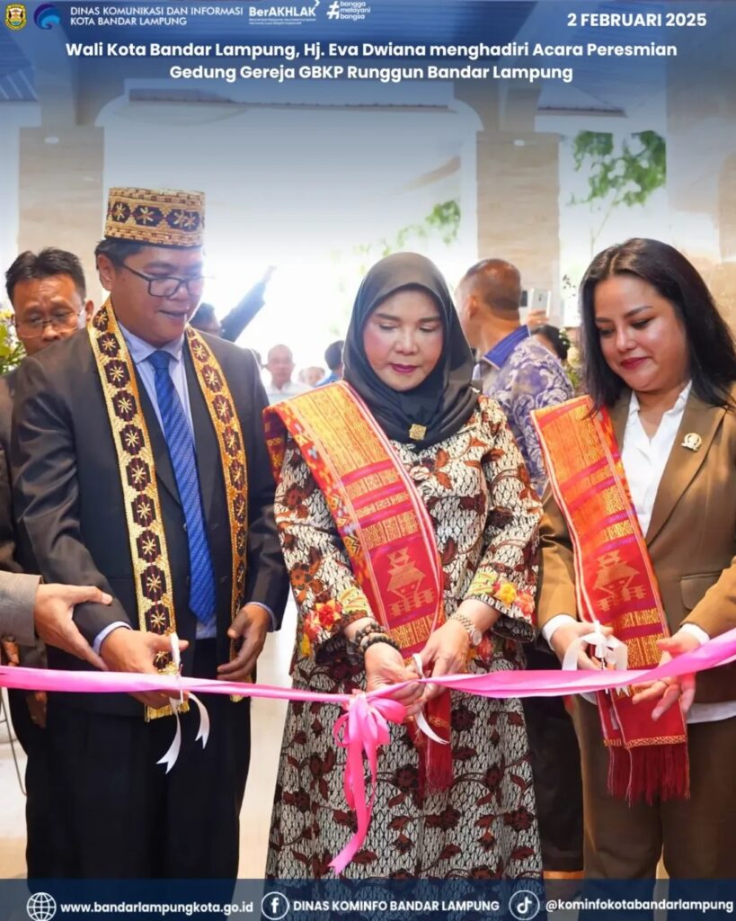 Walikota Bandar Lampung, Hj. Eva Dwiana menghadiri Acara Peresmian Gedung Gereja GBKP Runggun Bandar Lampung pada Minggu, 02 Februari 2025.