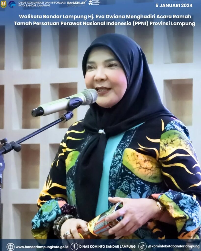 Walikota Bandar Lampung Hj. Eva Dwiana Menghadiri Acara Ramah Tamah Persatuan Perawat Nasional Indonesia (PPNI) Provinsi Lampung Di Aula Gedeng Semergo, Minggu Malam (5/01/2025).
